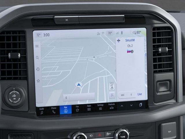 - EQUIPMENT GROUP 302A MID: Includes chrome door and tailgate handles, wrapped steering wheel, connected navigation, intelligent access with push-button start, 400W cab and bed outlets, dual-zone electronic automatic temperature control, power-sliding rear window, remote start system, heated front seats, and Ford Co-Pilot360 Assist 2.0 with advanced driver-assist technologies.