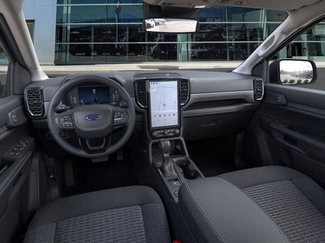 Inside, the Ranger XLT offers a spacious and comfortable cabin, with supportive cloth front bucket seats and a center armrest for added convenience. The SYNC 4A infotainment system with Connected Navigation keeps you connected and in control, while the 12-inch display provides a premium, high-tech experience.